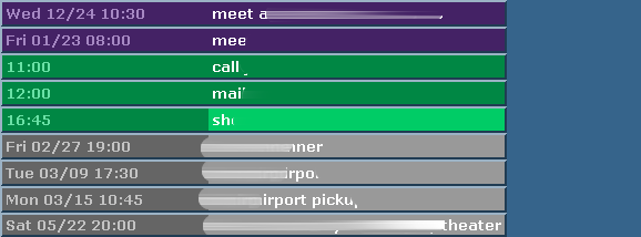 I want a constant view of the current and upcoming datebook items on my secondary computer screen (which normally just scrolls web and system logs).